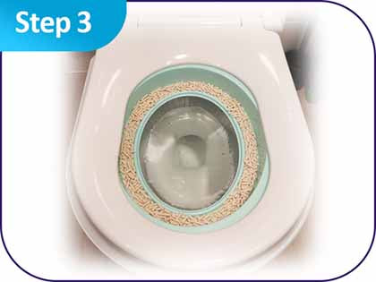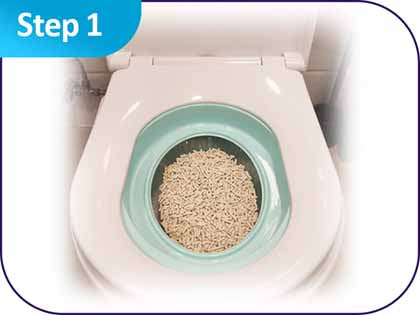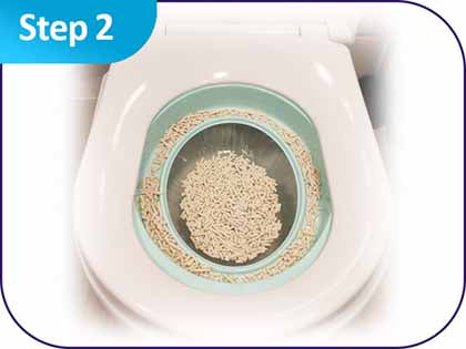 Litter Free! Remove the Training Ring and Traing Pan step by step. Your kitty can use the toilet like a human being!