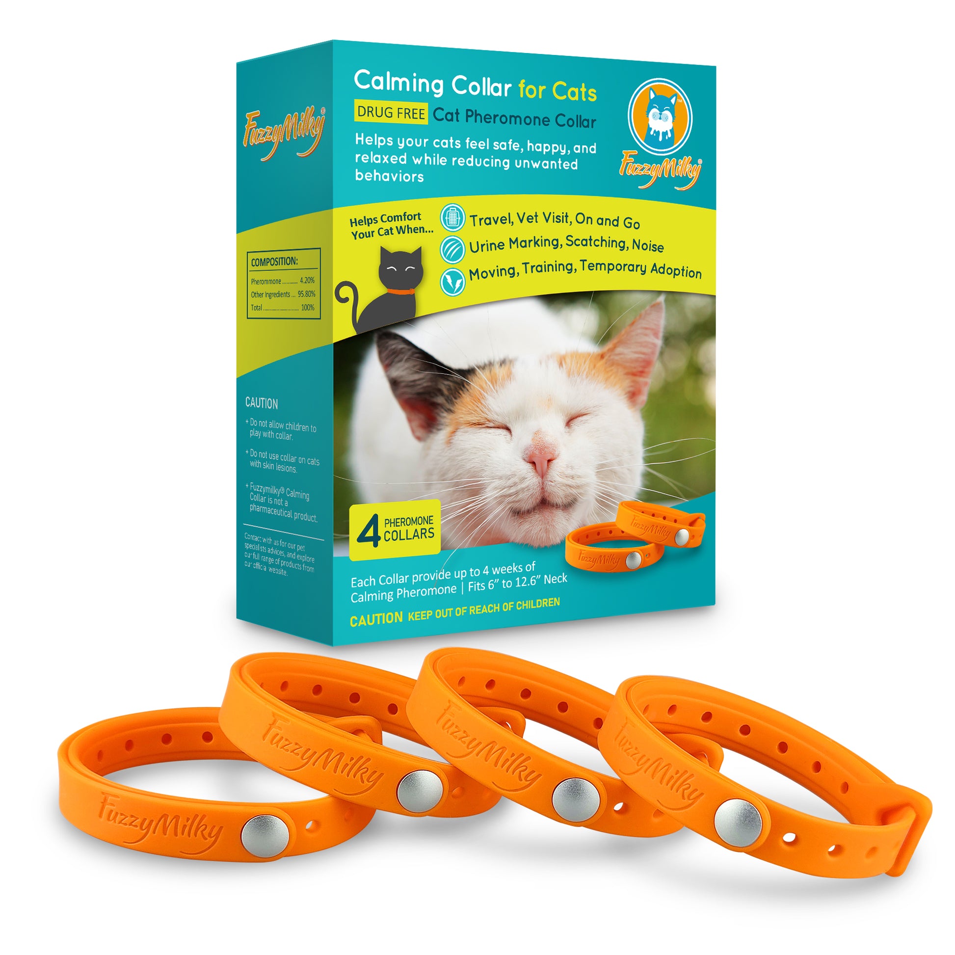 Fuzzymilky Cat Calming Collars (Orange) - 4 Packs Pheromone Calming Collar for Cats
